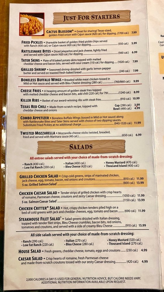 Texas Roadhouse Menu (Update 2025)